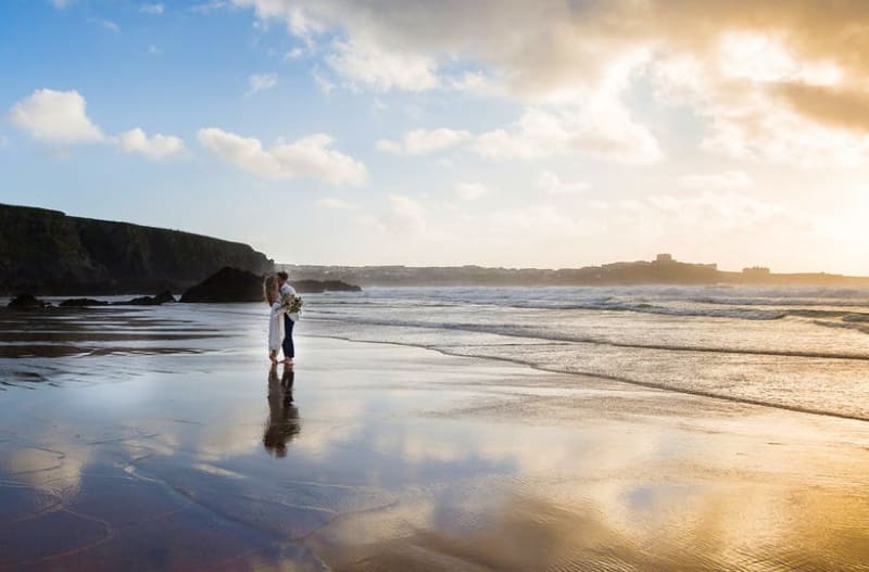 Lusty Glaze is a unique beach wedding venue in Cornwall, UK. Situated in a secluded cove on the outskirts of Newquay, our coastal venue is located on its own private beach with spectacular sea views across the Atlantic Ocean. Uninterrupted seascapes, fiery sunsets and dramatic cliffs make our little cove one of the most romantic places on Earth – there’s nowhere more perfect to start married life than with sand between your toes, the sea around your ankles and a spectacular Cornish sunset as your backdrop. A truly spectacular location, Lusty Glaze is the only venue in Cornwall where you can legally marry on the beach, available to hire on an exclusive-use basis – what could be more romantic than having your own private beach on your wedding day? Fully licensed for civil wedding ceremonies, elopements, blessings, vow renewals and receptions, our weddings are totally tailored and personalised to each couple, with a dedicated team on hand to make sure your special day is utterly perfect, unique and individually unforgettable. Our stunning location is the ideal venue for your special day, with beautiful scenery, golden sands, fiery sunset skies and a relaxed, laid-back and romantic atmosphere.