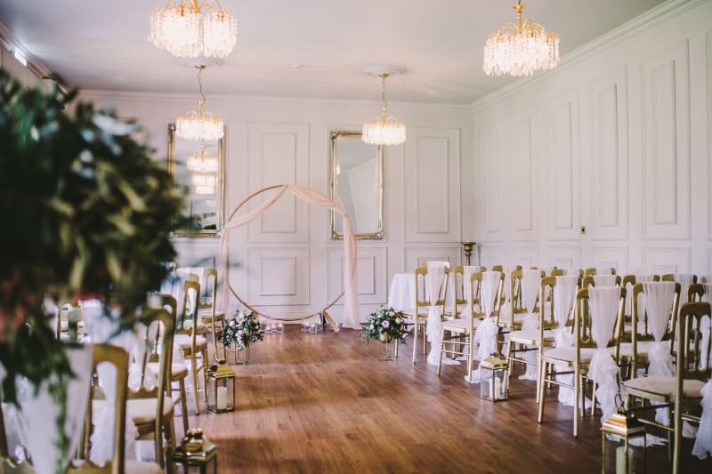 The majority of weddings at Mosborough Hall Hotel will take place in the Chatsworth Suite, which in an exclusive use building just a stone’s throw away from the main hotel. You will have sole use of the Chatsworth Suite, including the private bar area and courtyard which features plenty of outdoor seating and an inbuilt pizza oven. The suite is neutrally decorated throughout, allowing you to decorate the space however you choose and bring your colour scheme and theme to life. Having exclusive use of the Chatsworth Suite helps make your wedding day extra special, whilst still having the convenience of the on-site hotel rooms which are just a short walk away.