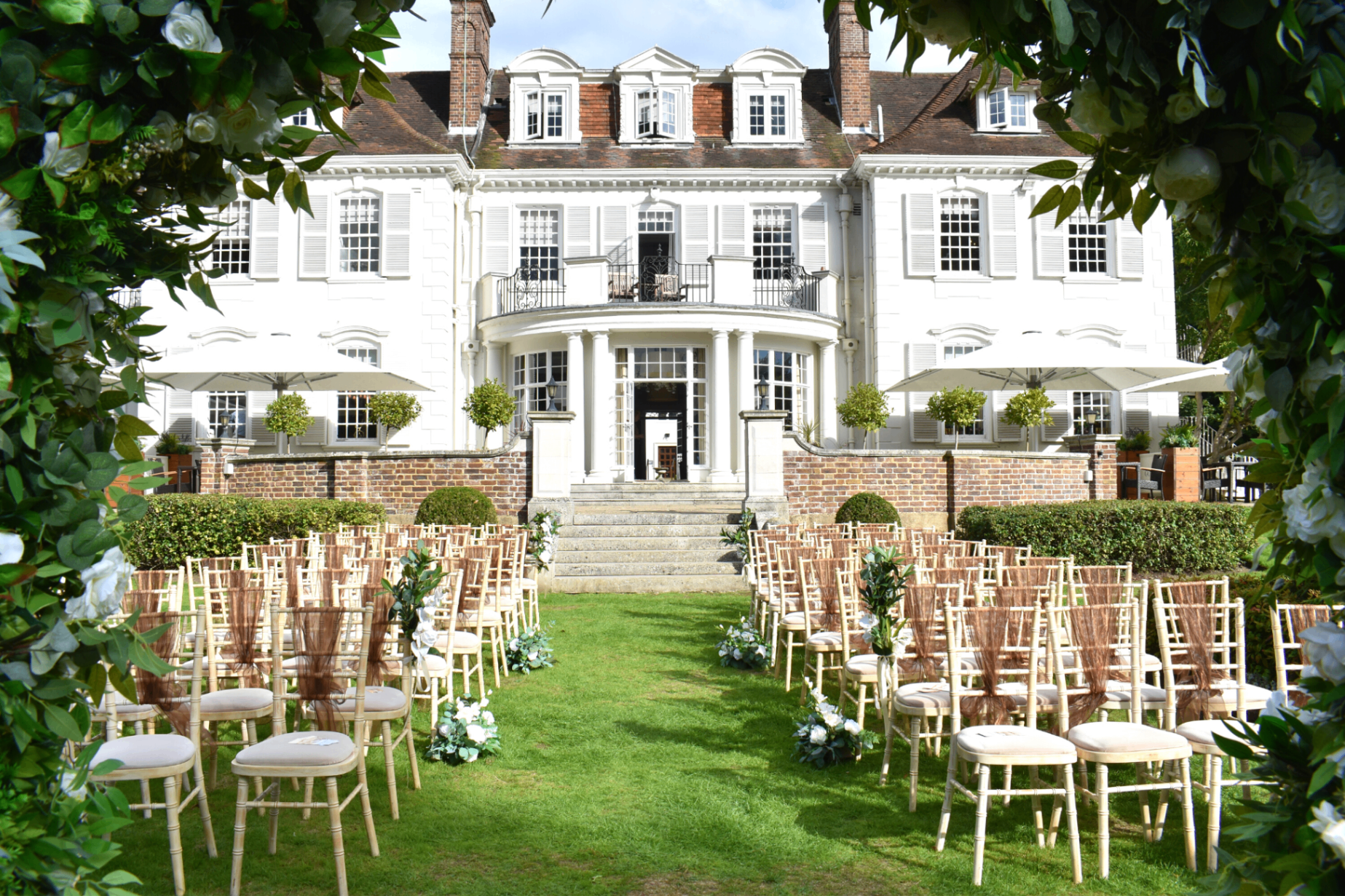 Sandown (our recommended bridal suite) is where your journey will begin, taking a look at how you will start your big day. Peruse our Library and Pavilion,, where we can’t wait to host your wedding ceremony. Then head to our Lily Pond Terrace to immerse yourself in the drinks reception experience whilst enjoying our breathtaking parkland views. Finally, into our rather stunning Parkview suite where your wedding breakfast and evening celebrations will take place – there’s even your own private terrace overlooking the grounds.